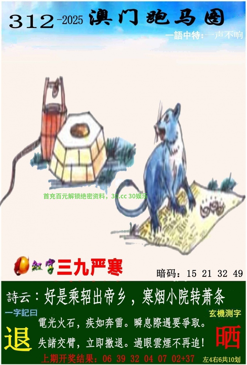 309期:🎼绝杀二尾🎼【3.8尾】开:鼠06准